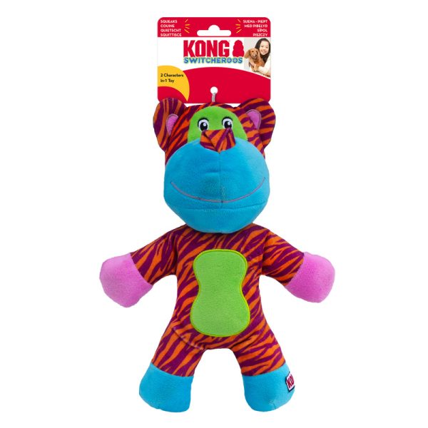 KONG Switcheroos feature a different character on each side for two fetch-and-snuggle friends in one toy and multiple squeakers with varied sounds that spark natural instincts.